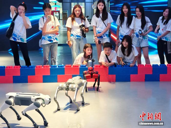 与AI下棋机器人对弈,同机器宠物狗互动,看京剧机器人唱念做打,和仿生机器人畅聊古今……8月5日,参加2025年华裔青少年音乐夏令营的近百名营员走进北京亦庄机器人大世界,近距离感受机器人技术在工业、医疗、居家生活等领域的最新应用成果。