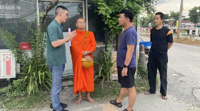 嫌犯之一苏叻在托钵化缘途中被警方当场抓获。(图:曼谷邮报)