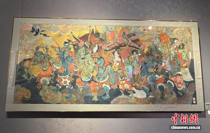 图为宝松创作的生宣纸工笔彩墨画《钟馗嫁妹图》。 刘洋 摄