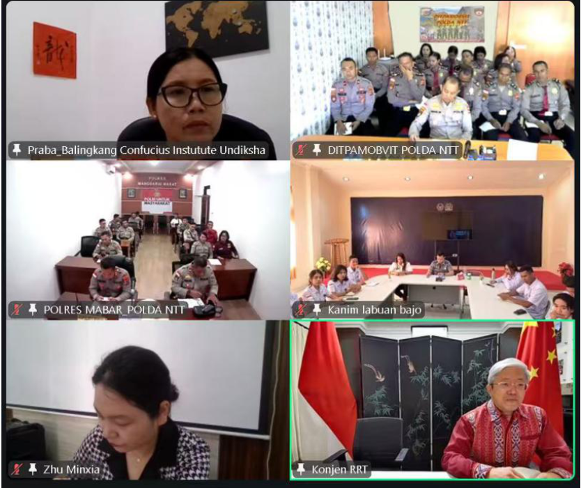 据中国驻登巴萨总领馆消息,8月6日,驻登巴萨总领事张志昇出席印度尼西亚东努沙登加拉省公务人员首届中文培训班线上开班仪式并致辞。朱宇副总领事、东努省警署和拉布安巴焦警察局、移民局、港务局官员和参训学员以及巴厘伽内什师范大学巴陵康孔子学院院长和教师共70多人参加。