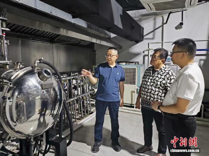 8月7日,菲律宾华商王威廉(中)一行走进海口综合保税区内的安基实业产业园厂房,实地考察投资环境。 中新网记者 张茜翼 摄