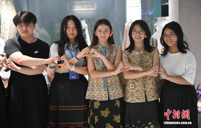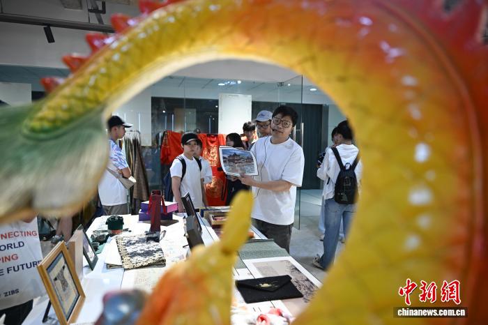 8月7日,欧洲华裔青少年参观纺织非遗创意馆。中新社记者 王刚 摄