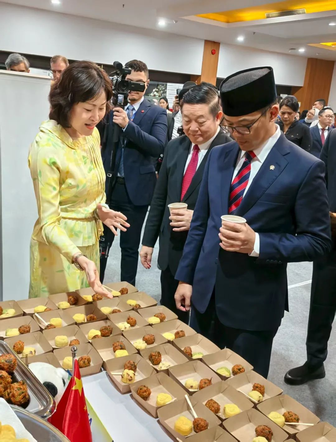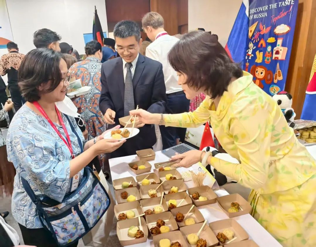 中国驻东盟使团在活动现场设置美食展位,吸引来宾纷纷驻足。侯大使向高金洪秘书长、苏吉约诺外长及各国驻东盟使节介绍中国特色美食,大家对中国味道和美食文化赞不绝口。