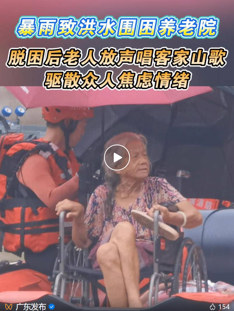 老人脱困后放声歌唱
