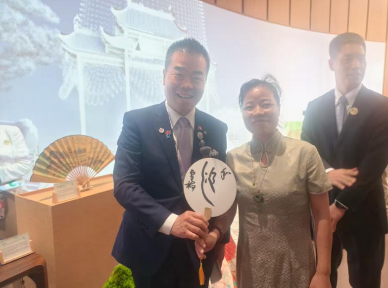 现场,李雪梅书写了《湖南赋》女书作品和专为日本观众设计的文创产品,成为一幕湖南非遗“走出去”的生动范例。