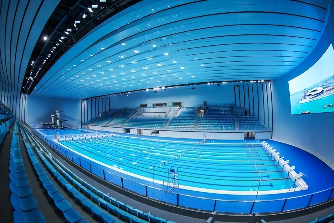 这座4000座位的游泳跳水馆建筑面积约5.5万平方米,共设置4片泳池(跳水池、比赛池、训练池、戏水池),可承办游泳、跳水、花样游泳、水球等国内外比赛。