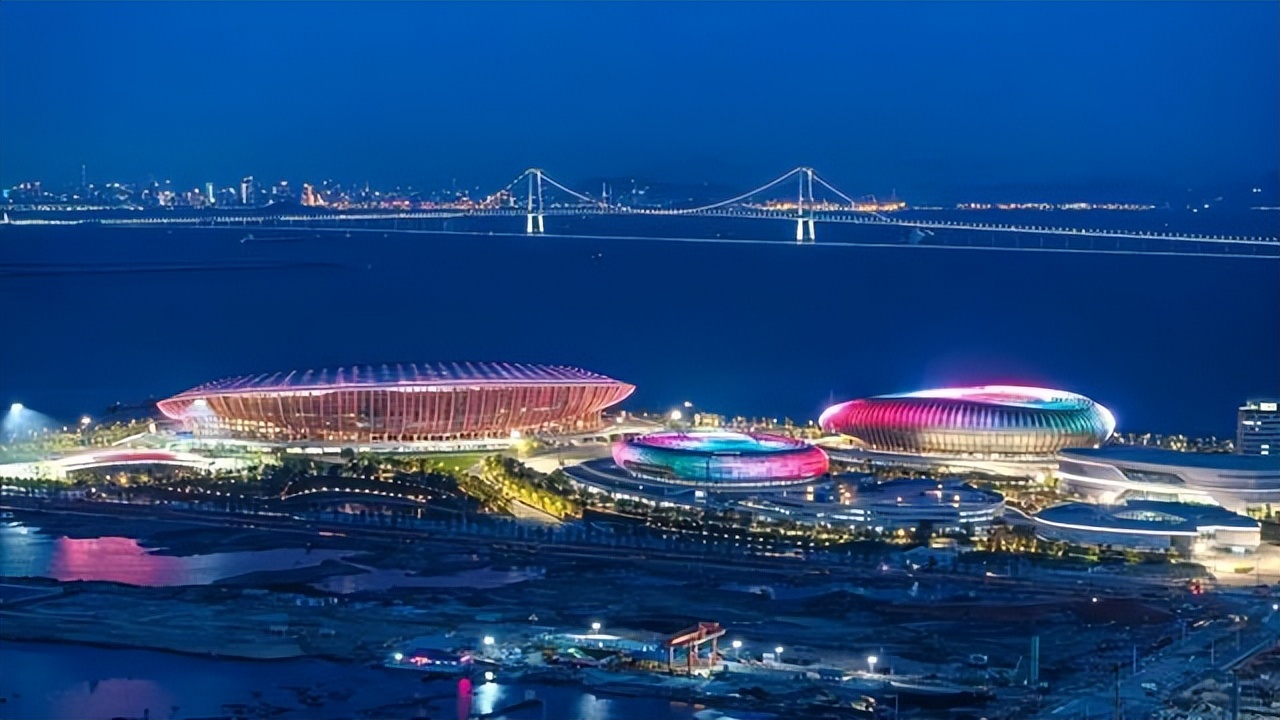 大湾区文化体育中心的造型很独特,综合体育场就像一把展开的扇子,两个场馆就像两颗海上明珠。