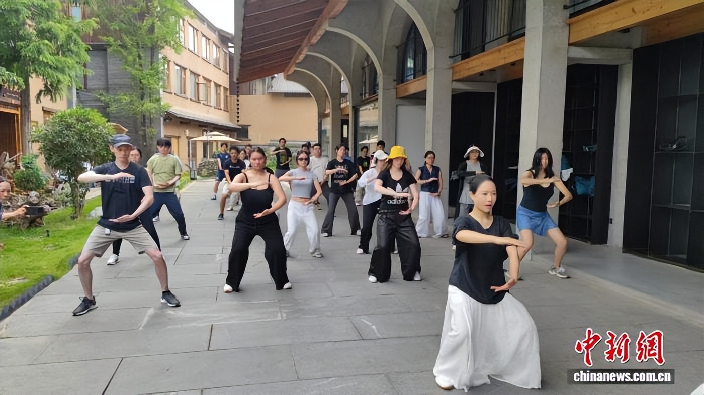 8月8日,华裔新生代在湖北武当山习练太极拳。 赵霜 摄