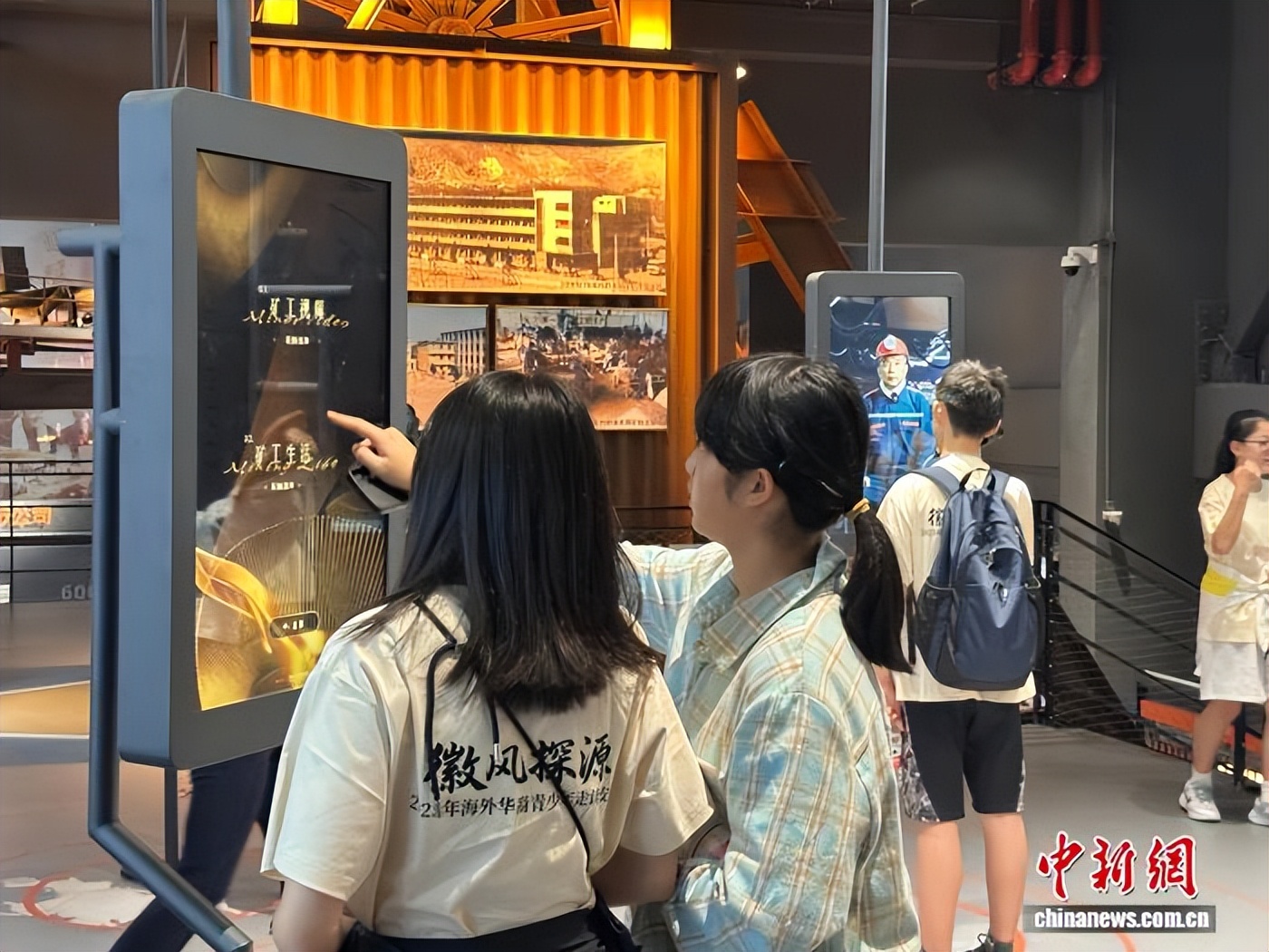 8月11日,华裔青少年们在安徽淮北工业博物馆参观了解淮北“矿工故事”。傅天骋摄