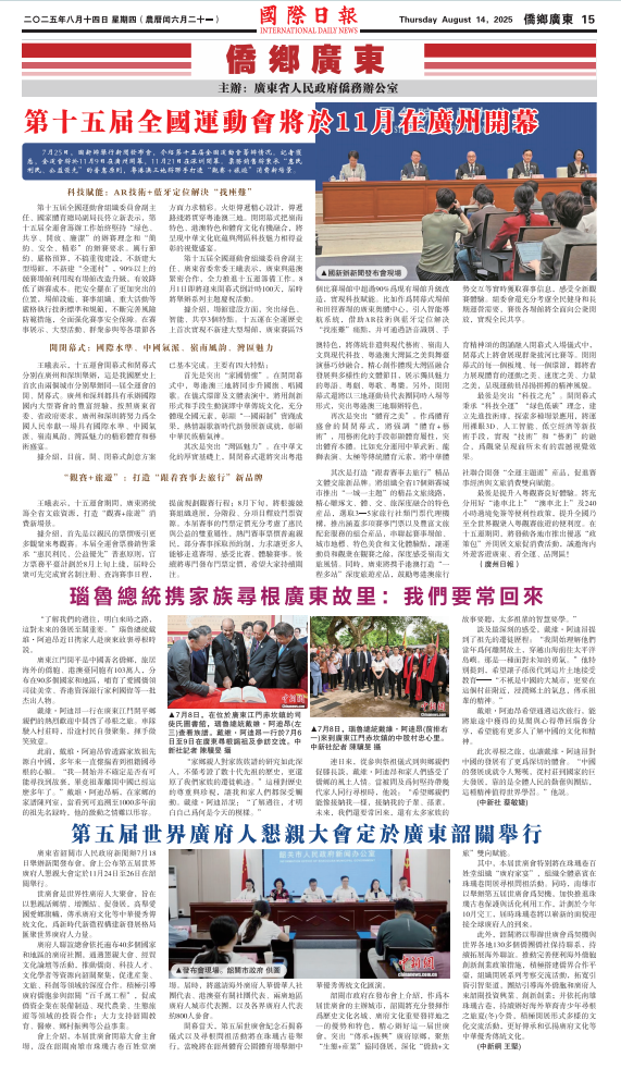 王曦表示,十五运会期间,广东将统筹全省文旅资源,打造“观赛+旅游”消费新场景。