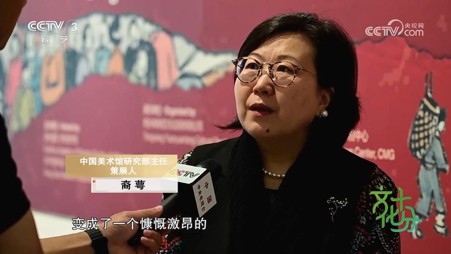 中国美术馆研究部主任、策展人裔萼:他就从一个温润如玉的、与世无争的谦谦君子,变成了一个慷慨激昂的、热血的战士。以笔当刀、以笔代枪,在文艺阵地上要冲锋杀敌。我们通过这个作品,感受到一个文人他的这种爱国之心,他的悲悯情怀,还有他的文人风骨。