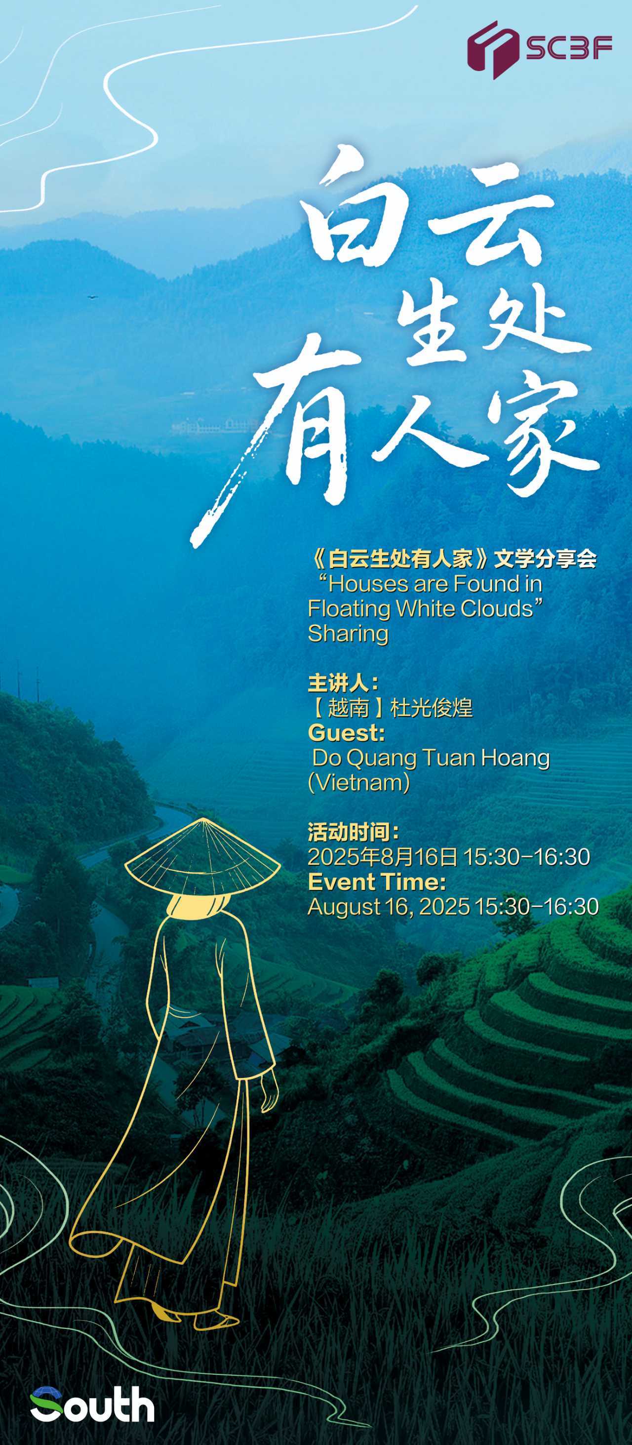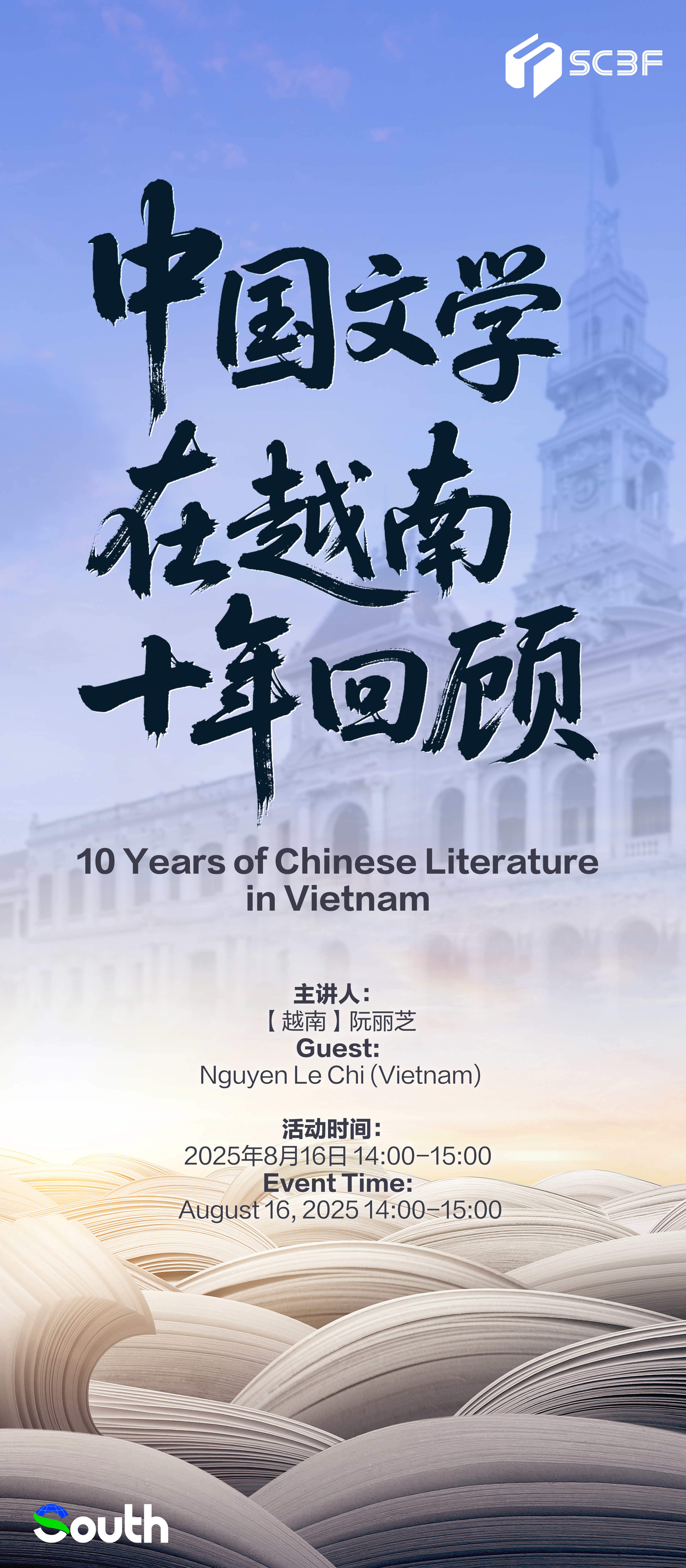 据介绍,作为策展方,South还安排了10多场丰富的文化交流活动,如胡志明研究的知名学者将联合举办“胡志明同志在广州”专题讲座,分享研究成果等。越南出版人、作家阮丽芝和作家杜光俊煌还将亲临现场分别举办“中国文学在越南十年回顾”主题分享和《白云生处有人家》读者见面会。