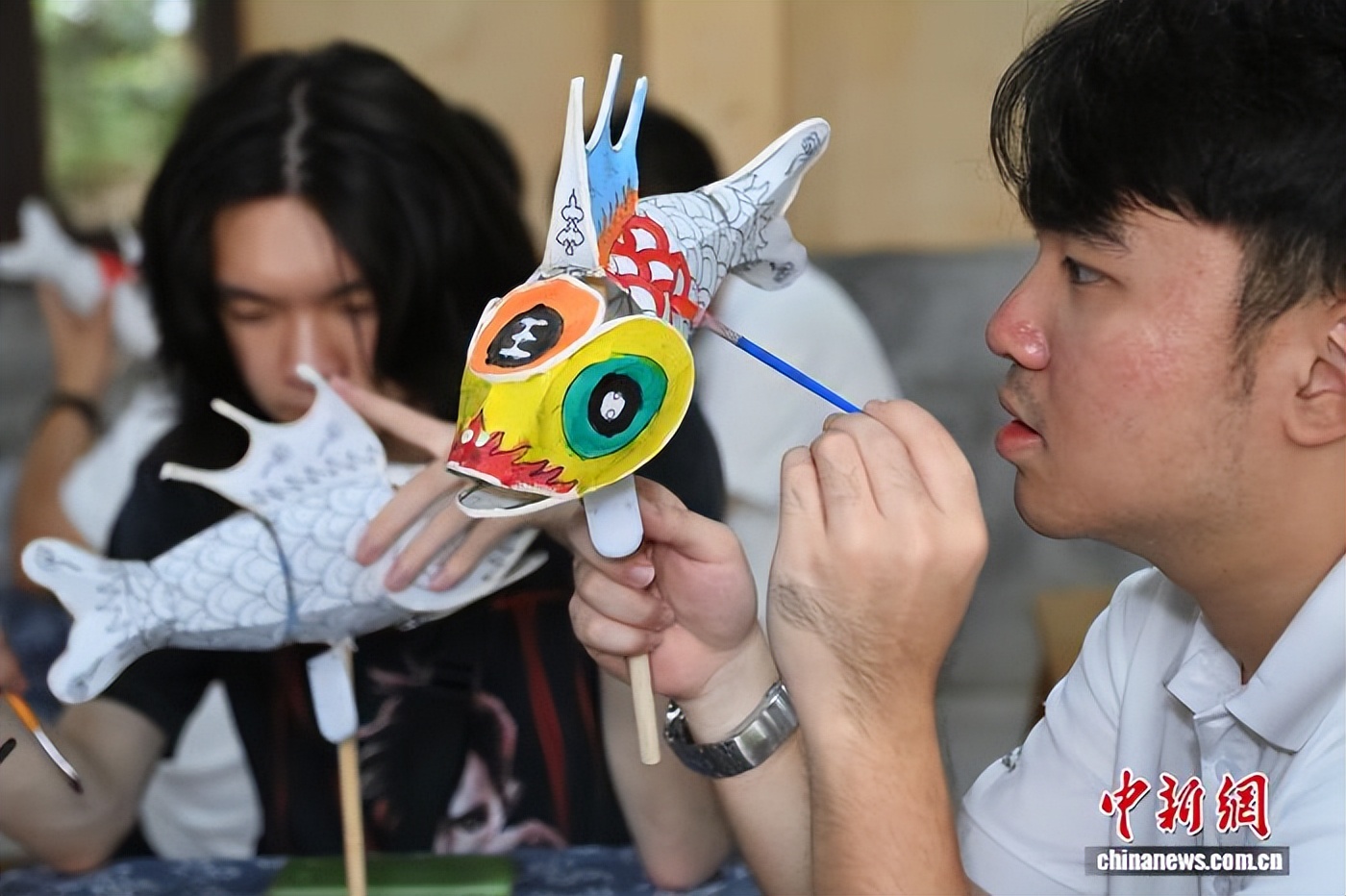8月11日,华裔大学生在宏村研学基地体验制作鱼灯。韩苏原 摄