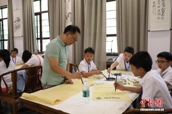 8月13日,华裔青少年在西安近距离感受书法魅力。吴海文 摄