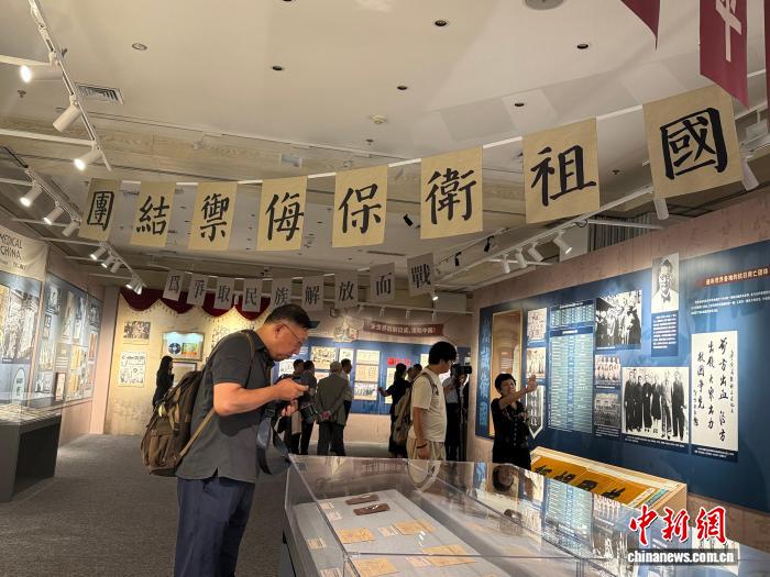中新社北京电 (刘洋)8月14日,“万里同心——海外华侨与中国人民抗日战争暨世界反法西斯战争纪念特展”在北京中国华侨历史博物馆(简称“侨博”)开幕。