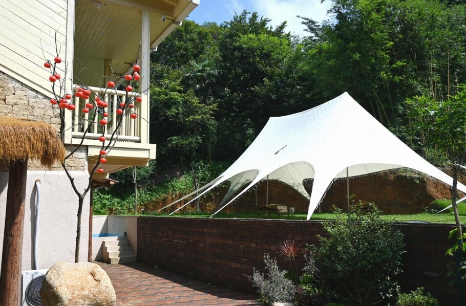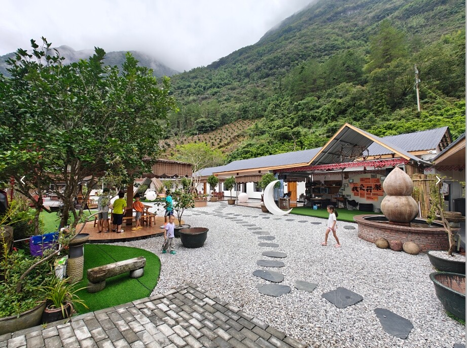 Di musim panas, di Desa Songlin, Kecamatan Daling, Kabupaten Yangshan, Kota Qingyuan, pemandangan yang indah dan asri serta hamparan hijau pedesaan yang memukau berpadu menjadi pemandangan desa yang hidup dan menawan. Di antara pemukiman pedesaan tersebut, halaman penginapan yang dihiasi batu kerikil abu-abu dan putih, dengan nuansa alami dan sederhana, dihiasi dengan tanaman hijau dan pot-pot tanaman. Platform kayu dan kanopi peneduh menciptakan ruang istirahat yang nyaman dan menenangkan.