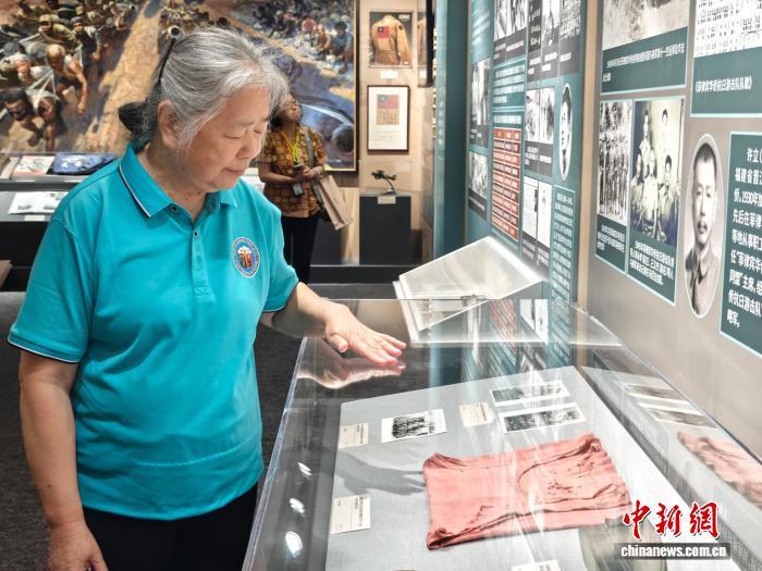 8月14日,许呈亮驻足在父亲许立负伤时身着的血衣前。 中新网记者 韩辉 摄