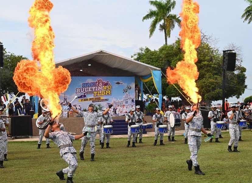 大马皇家海军铜乐队闭幕献礼,鼓乐节奏配合喷火特技,营造精色视听觉效果。
