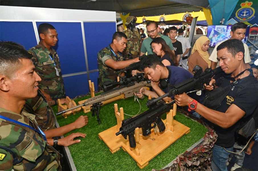 大马海军开放舰艇让人们参观,军事迷们欣喜若狂,把玩枪械。