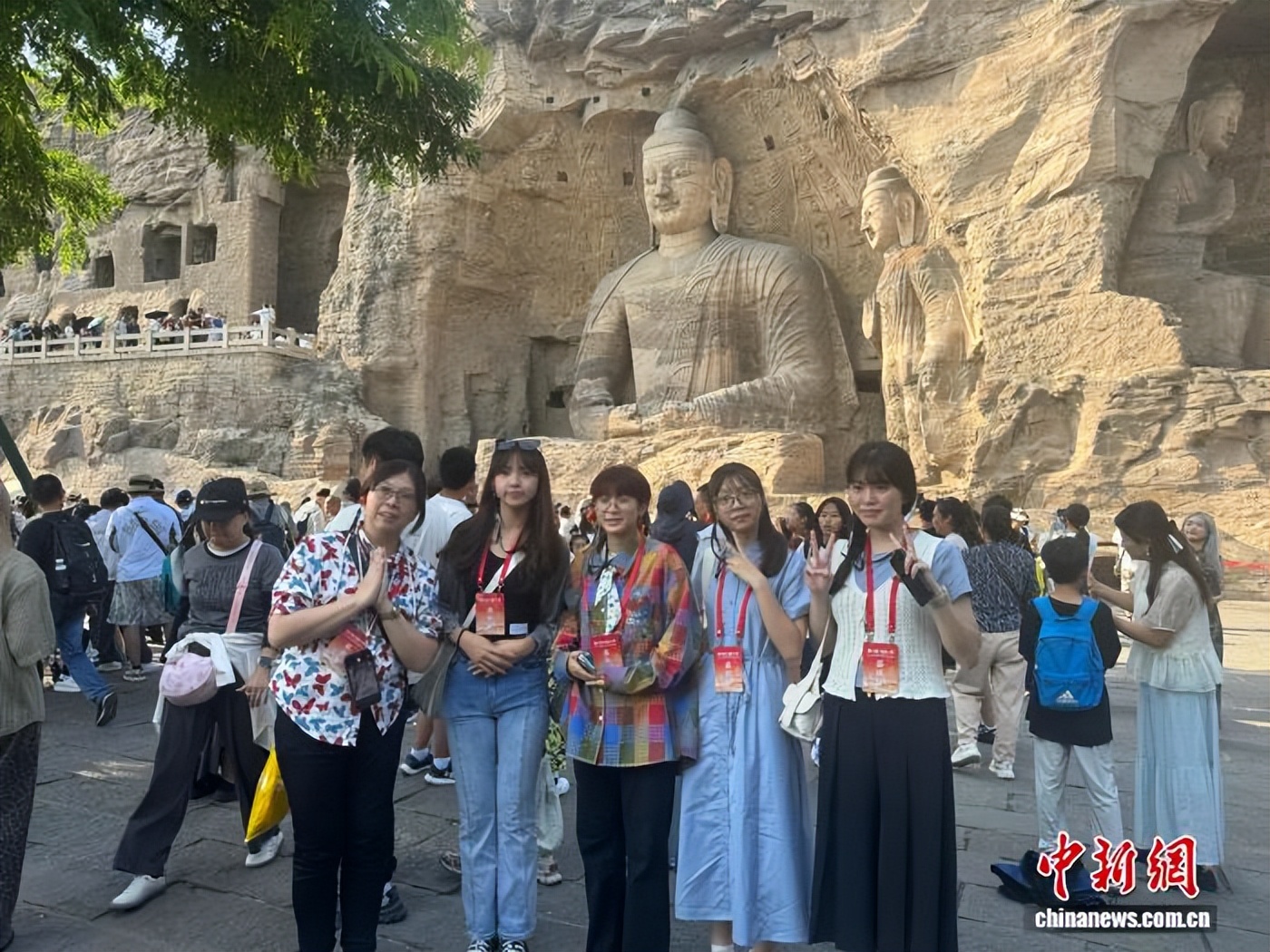 台湾青年们在山西大同云冈石窟参观。 杨静 摄