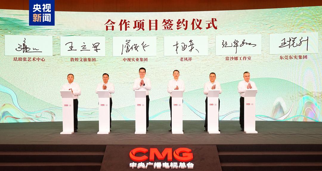 活动现场,中国国际电视总公司所属中视实业集团有限公司与老凤祥股份有限公司、敦煌文旅集团有限公司、东莞实业投资控股集团有限公司、常沙娜工作室、张同禄珐琅文化艺术有限公司签署合作协议,在艺术设计研发、供应链体系建设与区域文旅协同等领域开展合作,为“总台文创”构建全链条协作机制、拓展全国布局注入新动能。