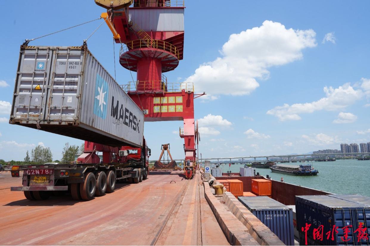 “新干河西码头首次发出箱包集装箱,标志着新干县水运经济与特色产业融合发展迈出关键一步。这不仅有效降低本地箱包企业物流成本,更打通‘江海联运’新通道,推动‘新干制造’加速出海。”新干县交通运输局相关负责人表示。