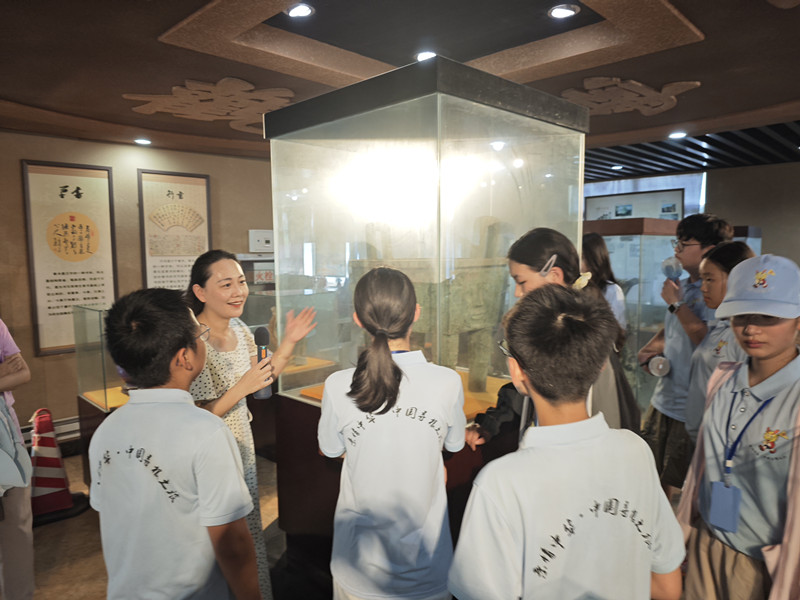 在曲阜师范大学附属实验学校,营员们瞻仰孔子像,深入了解了“仁爱”“中庸”等儒家思想精髓。他们观看了民族操表演,同学们身着各民族服饰,以优美舞姿展现出中华民族大家庭的团结与和谐。随后,大家依次参观了学校人文馆、民族团结馆及国际友好交流展示区,在笔墨纸砚等传统文房四宝前驻足体验,并通过丰富展品感知我国各民族交往交流交融的历史脉络。活动期间,该校与法国辛老师中文课堂签署友好合作协议,为中外文化交流搭建了新平台。