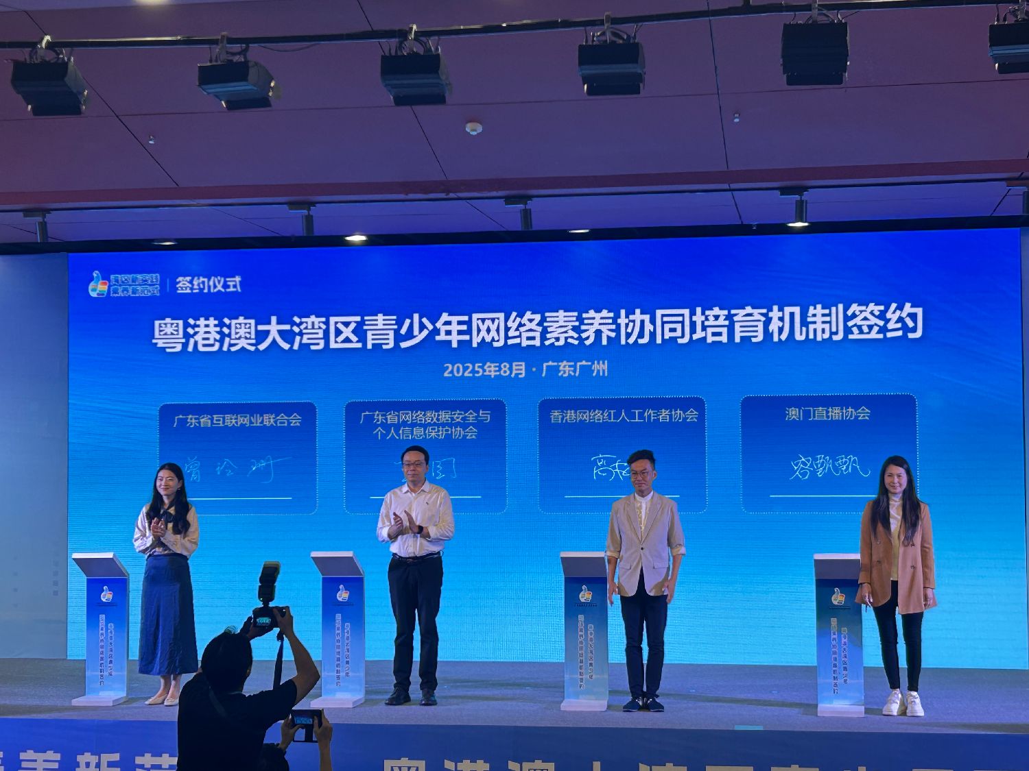 同時,廣東省互聯網業聯合會、廣東省網絡數據安全與個人信息保護協會、香港網絡紅人工作者協會、澳門直播協會共同簽訂了《粵港澳大灣區青少年網絡素養協同培育機制》。這是全國首個聚焦青少年網絡素養的區域協作機制,將通過共同開發優質課程、創作健康內容、搭建實踐平台、舉辦主題活動、科學評估成效,多方面提升大灣區青少年科學、文明、安全用網能力,增強數據安全和國家安全意識,增進國家認同。