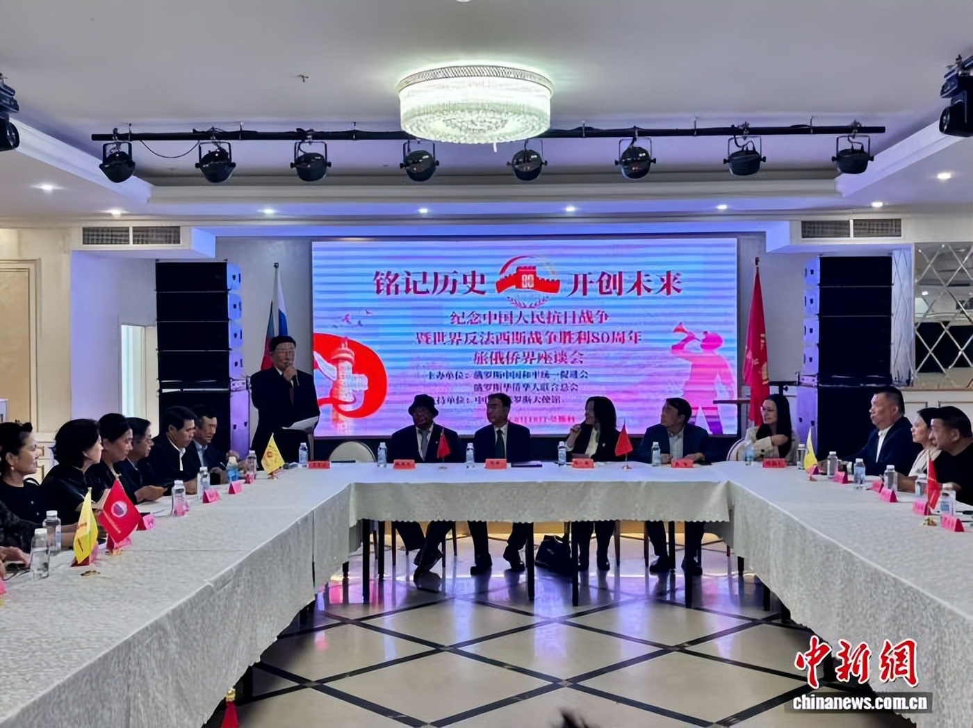 当地时间8月18日,俄罗斯中国和平统一促进会暨俄罗斯华侨华人联合总会在莫斯科举行“铭记历史·开创未来——纪念中国人民抗日战争暨世界反法西斯战争胜利80周年”旅俄侨界座谈会。