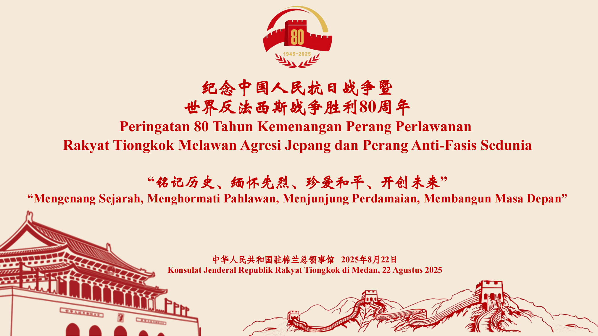 欢迎各位出席中国驻棉兰总领馆举办的纪念中国人民抗日战争暨世界反法西斯战争胜利80周年座谈会。80年前,全世界爱好和平的人民同仇敌忾、浴血奋战,彻底打败了法西斯主义。9月3日,中国将隆重举行纪念活动,习近平主席将出席系列活动、发表重要讲话并检阅部队。今天我们齐聚一堂,共同铭记历史、缅怀先烈、珍爱和平、开创未来。