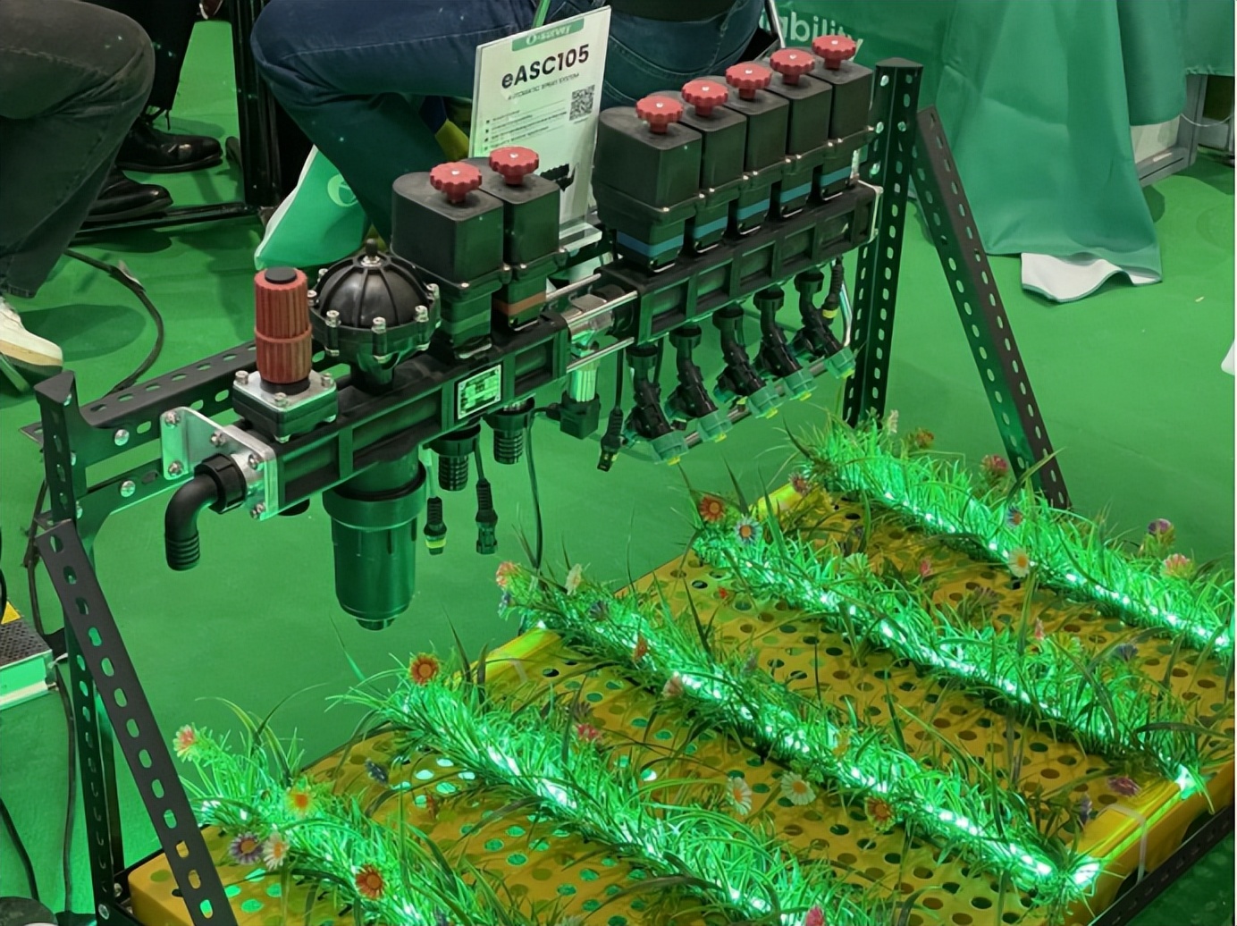 在本次展会上,eSurvey eASC105智能喷雾系统首次在市场上亮相,成为全场焦点。该系统深度融合高精度传感器与智能控制技术,配合RTK厘米级定位导航,实现药量误差小于5%、喷洒精度达95%的精准作业。