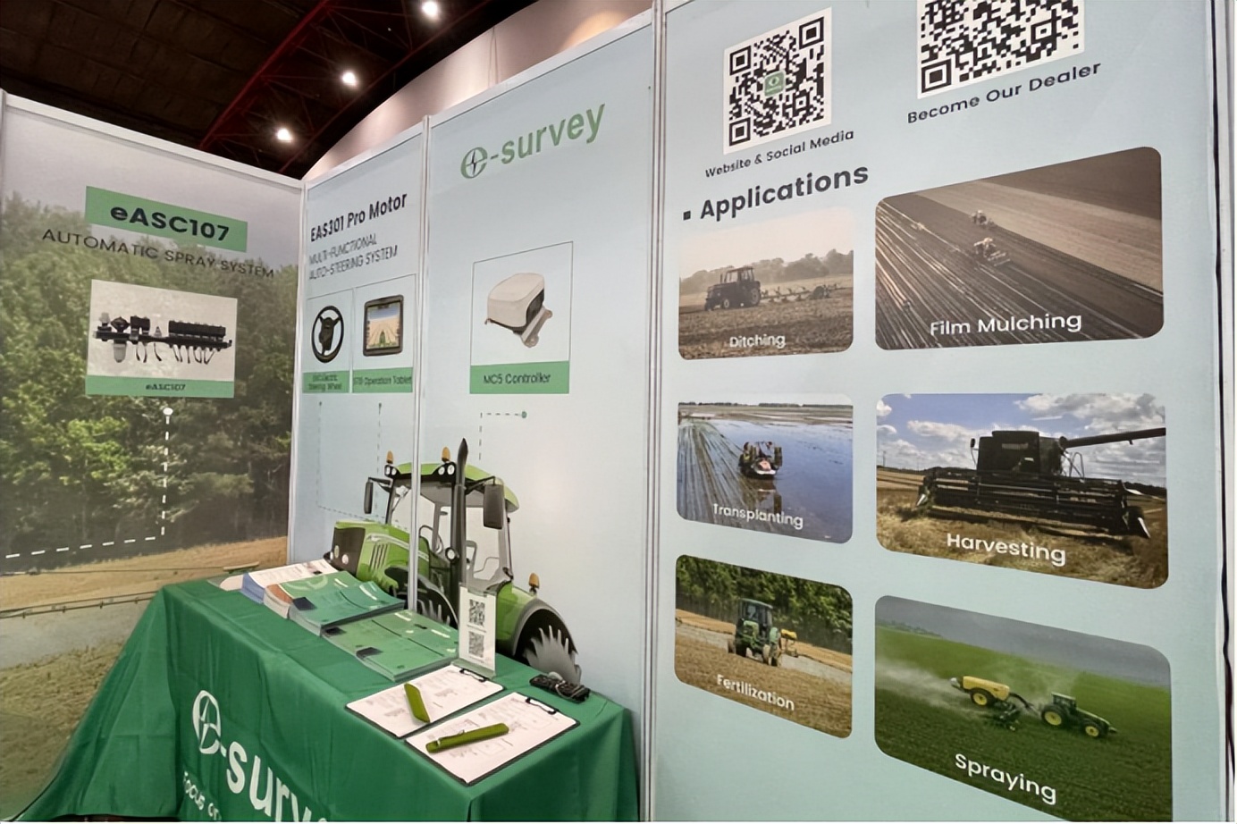 eSurvey展出的精准农业系列产品,凝聚了合众思壮在农业自动化领域的技术沉淀,以北斗/GNSS技术为核心,结合控制算法,让产品适用于多种农业作业场景。
