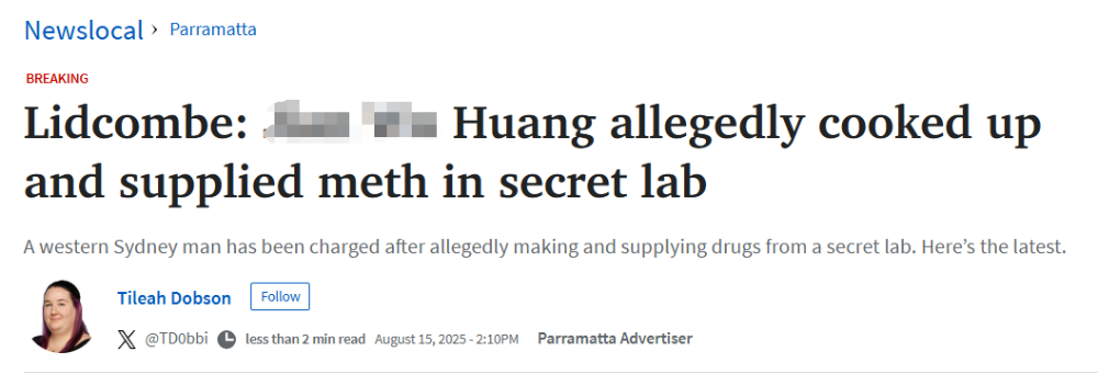 悉尼一名华人男子因涉嫌在秘密实验室制造价值1700万澳元的毒品而被逮捕并起诉。