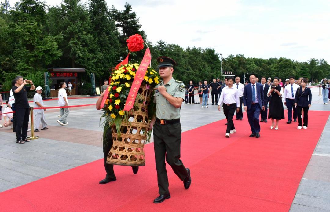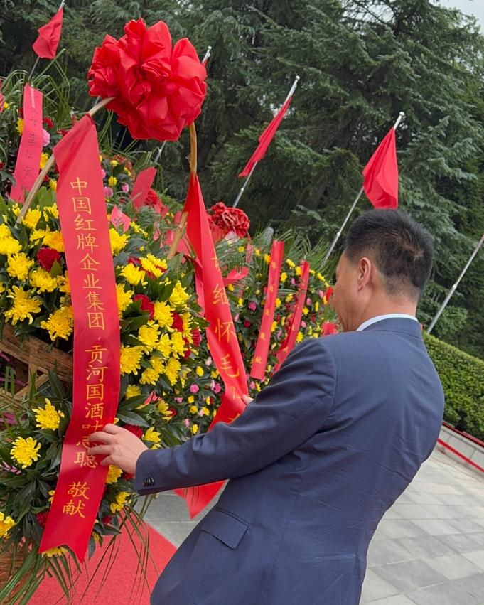 国际日报湖南韶山讯 (记者陈翘华)8月22日,湖南韶山毛泽东广场庄严肃穆,阳光朗照。广东省制造业协会会长、红牌集团董事长、贡河国酒投资人叶志聪携企业高管团队一行,整齐列队,缓步走向毛泽东同志铜像,举行敬献花篮仪式,深切缅怀一代伟人的历史功绩与崇高精神。