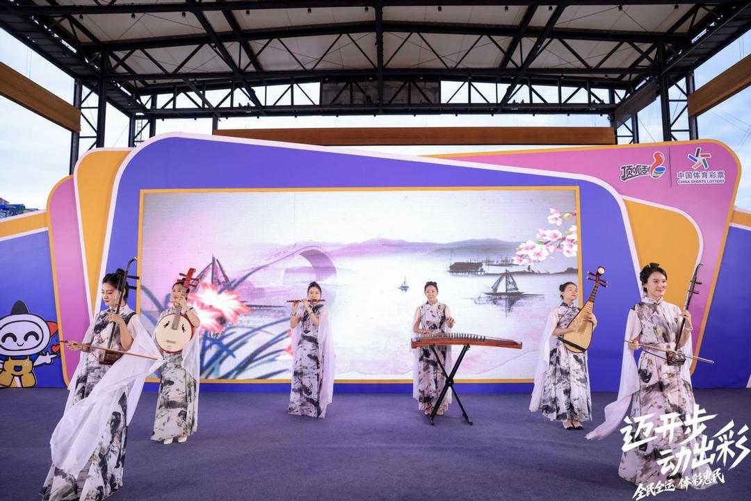 舞台演艺区从午后便开始升温,体彩宣传视频轮播提前唤醒大家的热情。17:00后,活力啦啦操、磅礴民乐《辉煌》、流行爵士舞、乐队串烧等节目接连上演,45分钟的尊巴带练更是掀起全场高潮,参与者跟随教练的节奏舞动,将运动活力尽情释放。数轮体彩知识竞答环节中,观众踊跃举手参与,从体彩品牌历史到公益金用途,大家在答题互动中加深了对体彩的了解,答对者也收获了乐小星玩偶和属于自己的幸运满载而归。