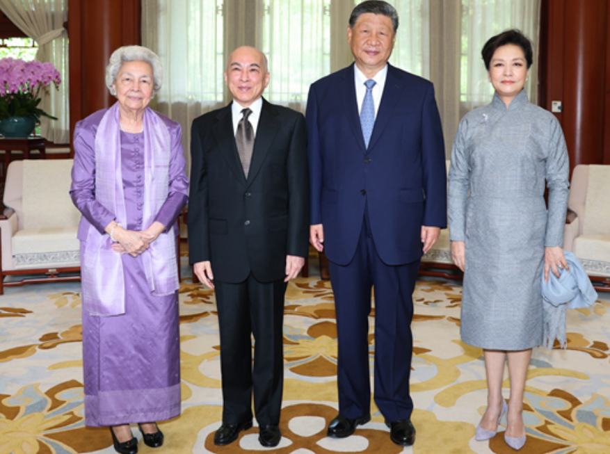 习近平热烈欢迎西哈莫尼国王和莫尼列太后再次来华,也欢迎西哈莫尼国王出席中国人民抗日战争暨世界反法西斯战争胜利80周年纪念活动。习近平表示,今年4月我对柬埔寨进行国事访问,受到国王陛下和柬埔寨人民热情友好接待,至今想起都感到十分亲切。中柬关系历经国际风云考验,结成风雨同舟的铁杆友谊,成为两国人民的宝贵财富,值得双方倍加珍惜。面对变乱交织的国际形势,中柬两国要更加坚定地站在一起,赓续传统友谊,加强团结协作,加快建设新时代全天候中柬命运共同体,为两国人民带来更多福祉。中方坚定支持柬埔寨人民走符合本国国情的发展道路,实现国家长治久安。