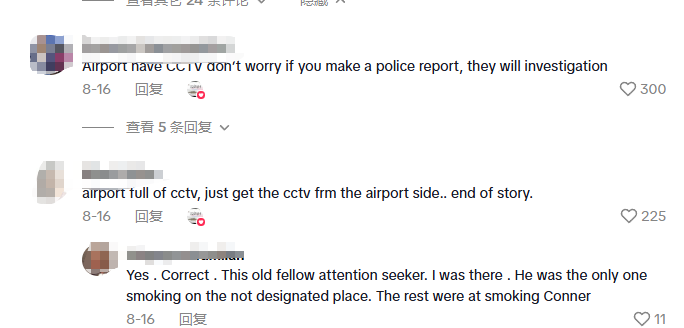但是在其中一条留言下,有人声称自己是目击者,说当时他就在现场看到王某抽烟,其他人都在吸烟区,而他是唯一一个不站在吸烟区抽烟的人。