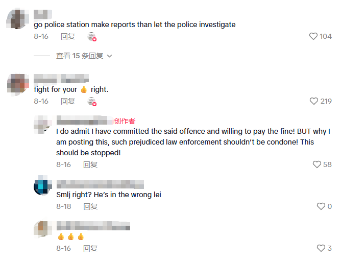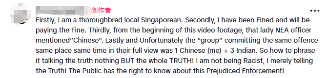 除此之外,也有评论陷入了激烈种族争论,认为两位警官是马来西亚人,所以针对新加坡人。有人提出执法时候应该安排不同种族的执法人员,避免出现种族歧视。