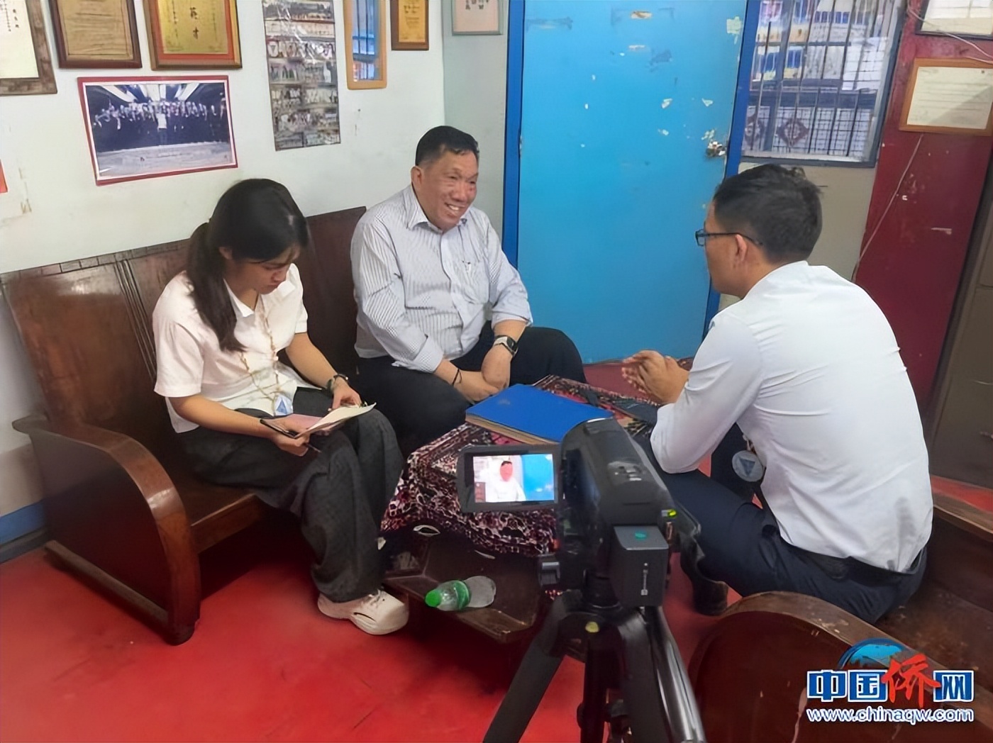 图为汕头大学团队对菲律宾中山中学校长李炜钦进行访谈。 (郑慕强供图)