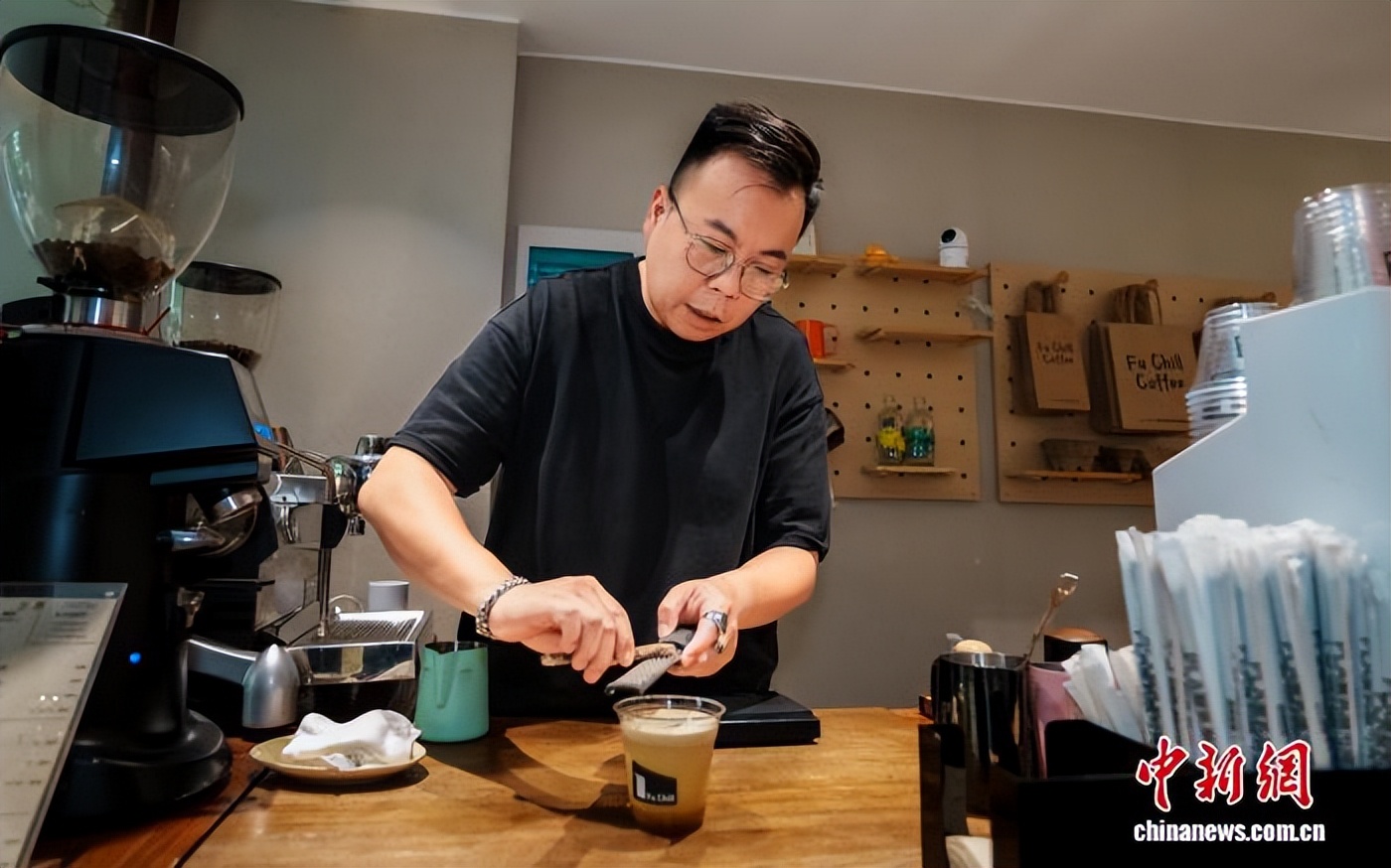 中新网丽水电(傅飞扬 廖王晶)走进位于浙江省丽水市莲都区寿元街的“福气”咖啡馆,浓郁的咖啡香气令人流连忘返。“做咖啡特别需要坚持,知识、机器和技术都在更新迭代,只有追求品质,才能走得更远。”该咖啡馆主理人、来自台湾台北的许劭威近日受访时说。