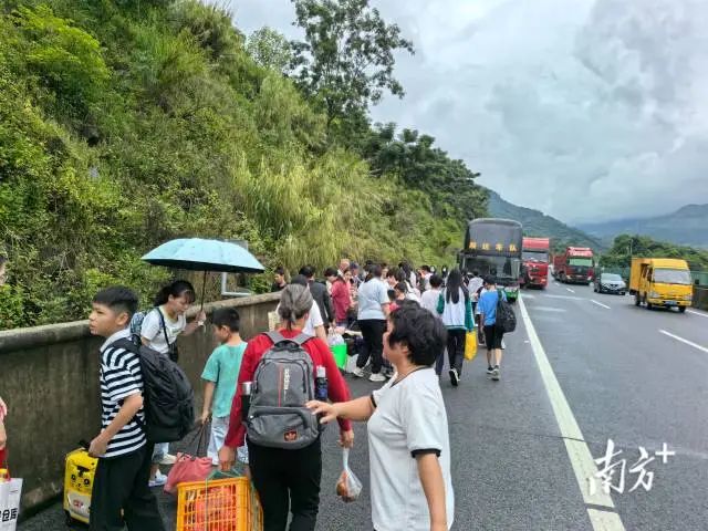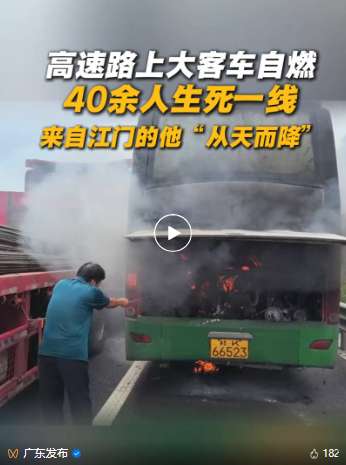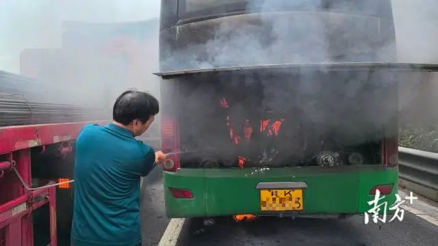 事发时李建正携女儿返乡探亲。行驶至汕湛高速茂名路段时,李建发现前方一辆载有多名乘客的大客车尾部冒出滚滚浓烟,火苗从发动机舱窜出。