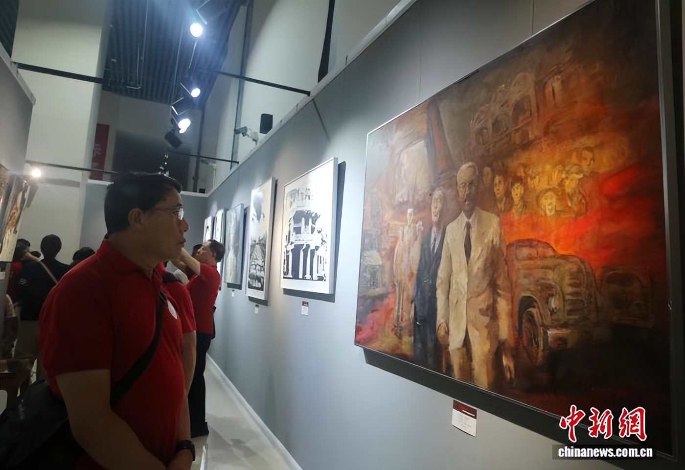 南侨机工学会会长陈达娅介绍,此次共展出陈达敏、赵敬东、黄冶、阿兰叶普拉迪4位画家的70幅油画、版画及水彩画。