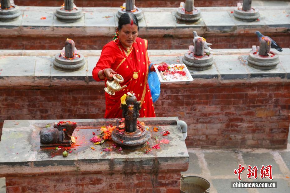 8月26日,尼泊尔加德满都谷地城市勒利德布尔,身着红色纱丽的女性在当地一座庙宇中祈福。当日,尼泊尔民众迎来“女人节”(TheTeej)。尼泊尔女性通常在这一天身穿红色纱丽前往当地的庙宇,以唱歌、跳舞、点灯祈福及斋戒(通常滴水不进)的形式祈福。中新社发 普拉丹 摄