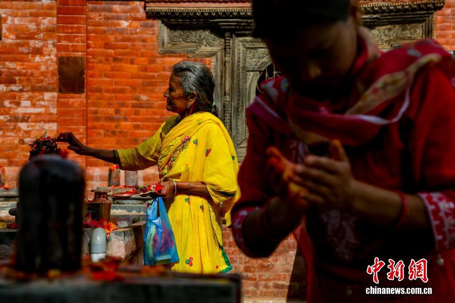 8月26日,尼泊尔加德满都谷地城市勒利德布尔,身着艳丽纱丽的妇女在当地庙宇中祈福。当日,尼泊尔民众迎来“女人节”(TheTeej)。尼泊尔女性通常在这一天身穿红色纱丽前往当地的庙宇,以唱歌、跳舞、点灯祈福及斋戒(通常滴水不进)的形式祈福。中新社发 普拉丹 摄
