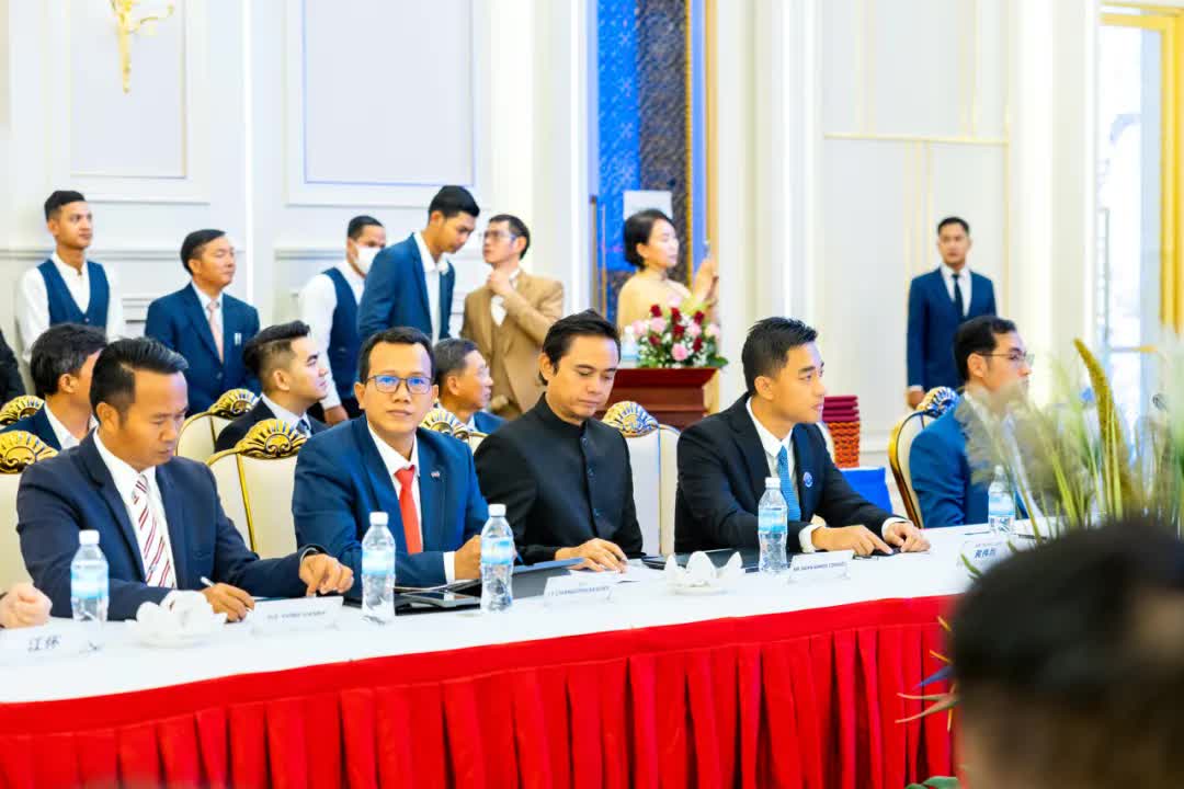 柬埔寨工业部副部长、科学、技术和创新部国务秘书索贡兴阁下,柬埔寨发展理事会副秘书长林伟夏阁下,实居省第一经济特区董事长、副董事长黄伟烈,中国亚洲经济发展协会副会长、碳中和绿色发展委员会会长符建先生,中国亚洲经济发展协会职业人才委员会会长李玉先生,中国国家建筑材料展贸中心、国家建材研究院院长张颖女士,中柬产业投资有限公司总经理黄少满先生,以及来自纺织、建材、小家电、纳米科技等领域的企业家朋友、媒体朋友们出席了此次签约仪式。