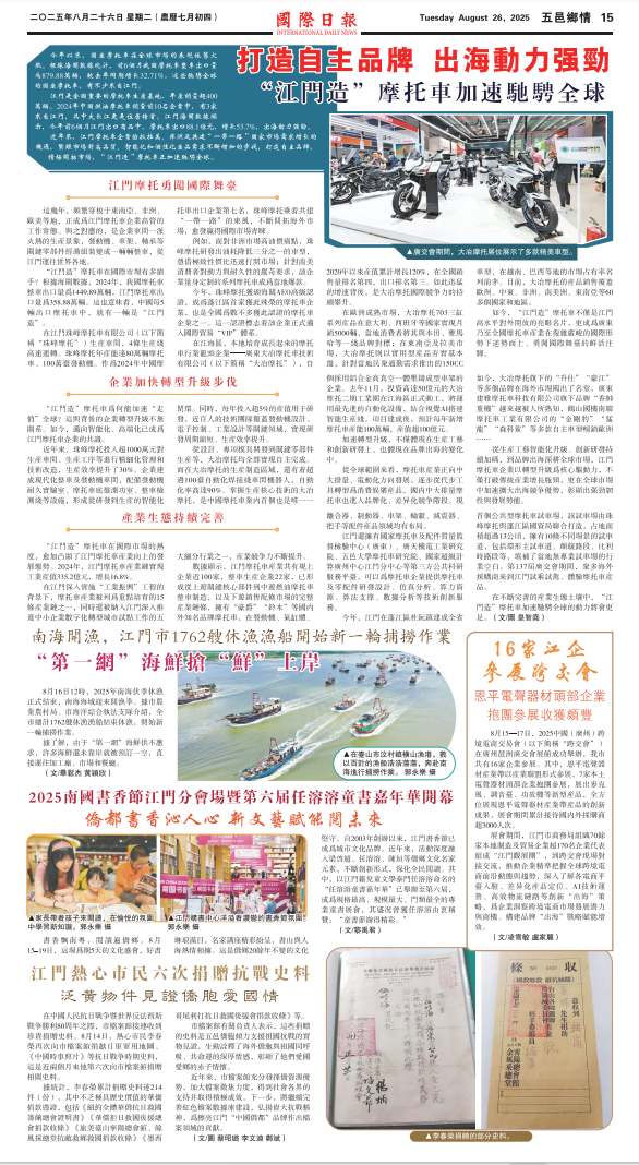 如今,“江门造”摩托车不仅是江门高水平对外开放的亮眼名片,更成为广东乃至全国摩托车产业在复杂严峻的国际形势下逆势而上、勇闯国际舞台的鲜活注脚。