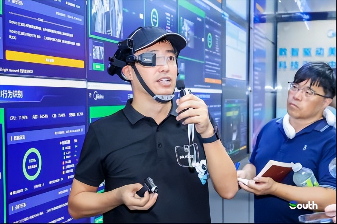 Midea staff showcasing AI-assisted glasses