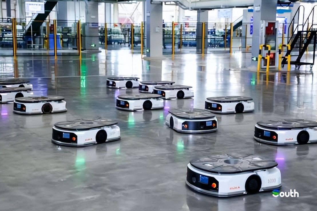 Autonomous mobile robots(AMRs)working in the factory