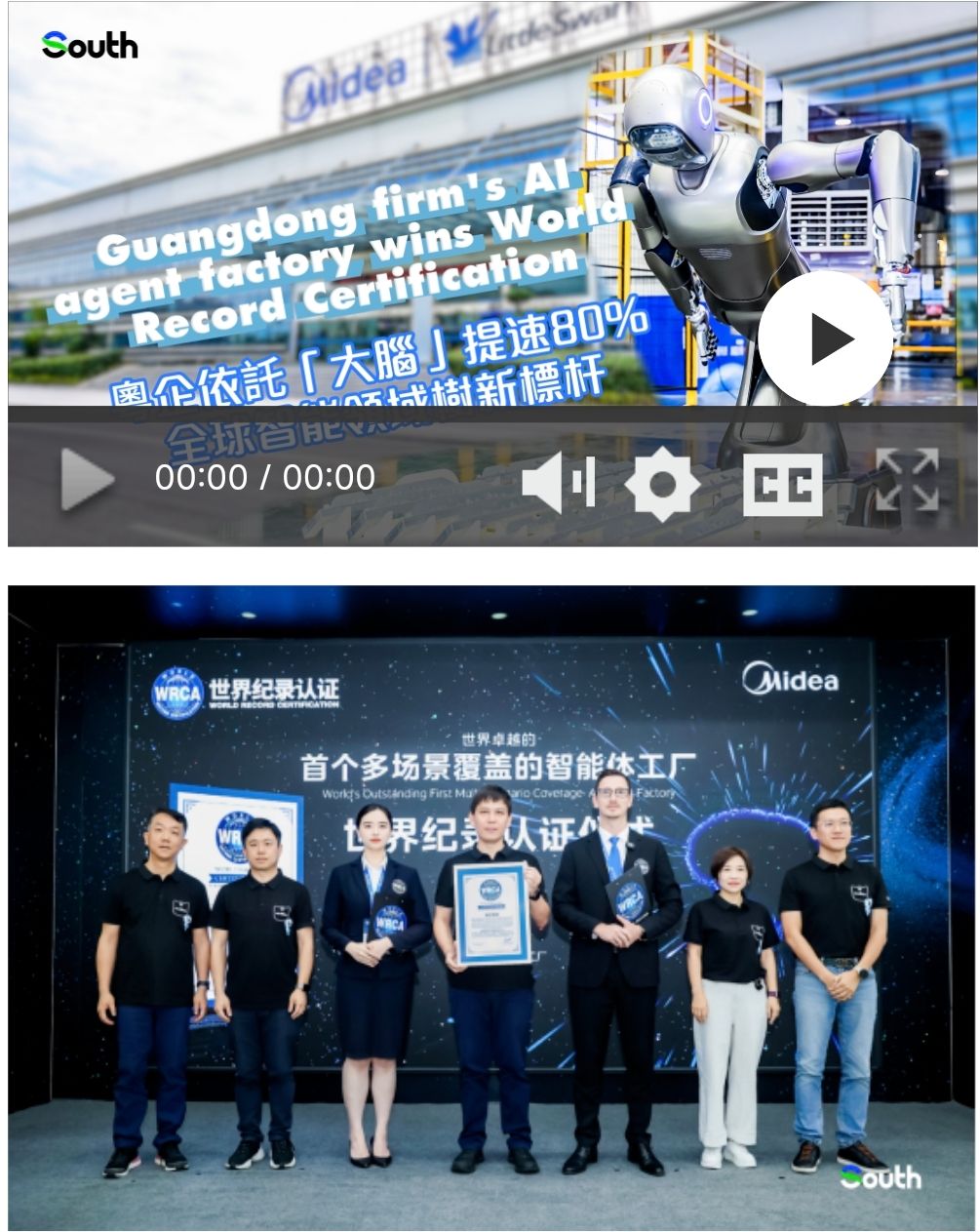 The project recently received certification from the London-based World Record Certification Agency(WRCA),which praised its scale and the use of AI agents operating across multiple scenarios. Currently,14 AI agents manage 38key production scenarios,from scheduling and logistics to quality checks and equipment maintenance.
