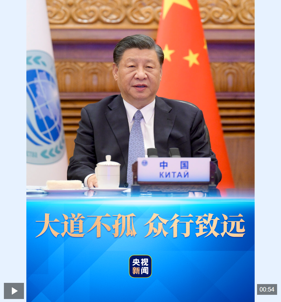 “大道不孤,众行致远。上海合作组织顺应当今时代潮流、契合人类进步方向,一定能够在我们的共同努力下不断发展壮大。”